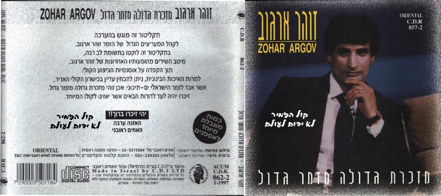מזכרת גדולה מזמר גדול שם התקליטור אינו מטעה. זוהי אכן המזכרת הגדולה ביותר שיכול לקבל מעריץ מהמלך. בדיסק, שיצא בשנת 1997 והופק ע"י 'האחים ראובני', קובצו מיטב השירים מהופעותיו האחרונות של זוהר ארגוב תוך הקפדה על אוטנטיות הביצוע המקורי. האיכות ורמת קולו של זוהר נמוכות מאוד (בחלק מהשירים לא ניתן כמעט להבין מה נאמר בהם) וניכר עליו השימוש בסמים. אך למרות זאת, נאמר בעטיפה האחורית של הדיסק, 'ניתן להבחין בכישרון הקולי האדיר שאבד לזמר הישראלי ים-תיכוני'. צילום עטיפה - אליצור ראובני, ביצוע גרפי - אורנה ראובני. קישורים עטיפת התקליטור גודל מלארשימת השירים מחרוזת: הרחק ביער-אשת חייל, מחרוזת: פעם פעם-צעיר בלב, ברצלונה, מחרוזת: בלילה-סוד המזלות-הוי אנשים-יא עווזל פלפלו , חביבי דיאלי (אנא מריד), פעם פעם, מחרוזת: עד מתי אלוהיי-האסיר, היה זה בערב סגריר, מחרוזת: אלינור-פתאום מצאתי בך, מחרוזת: האסיר-עד מתי אלוהיי, סוד המזלות, מחרוזת: הרחק ביער-אשת חיל. קטגורית המיוחדים המלאה